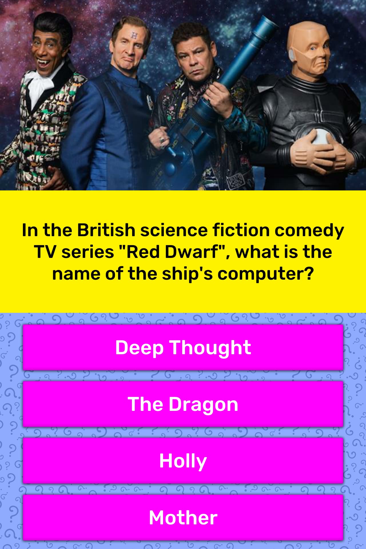 Red Dwarf Computer Name. Computer senility is a fictional concept developed in the "Red Dwarf" television series that considers how a sentient computer might develop mental Kryten also claims that he knew a fellow mechanoid who was senile, whose name was Gilbert but preferred being called "Rameses Niblick the Third. What's the name of Red Dwarfs computer?