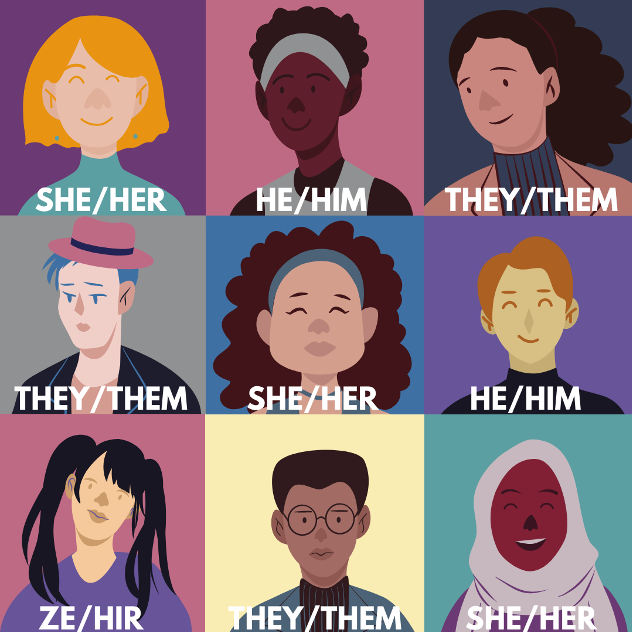 Pronoun examples: He, His, Him, Her, Hers, She, Them, etc.